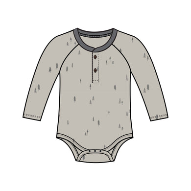 Lucas Raglan Henley Bodysuit: Trees / Stone + Graphite / 18-24M