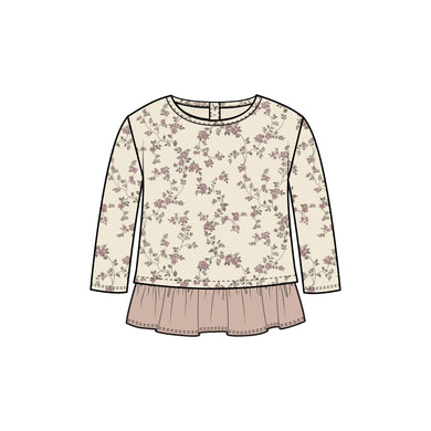 Lily Long Sleeve Ruffle Hem Top: Agnes Floral / Mauve / 2T