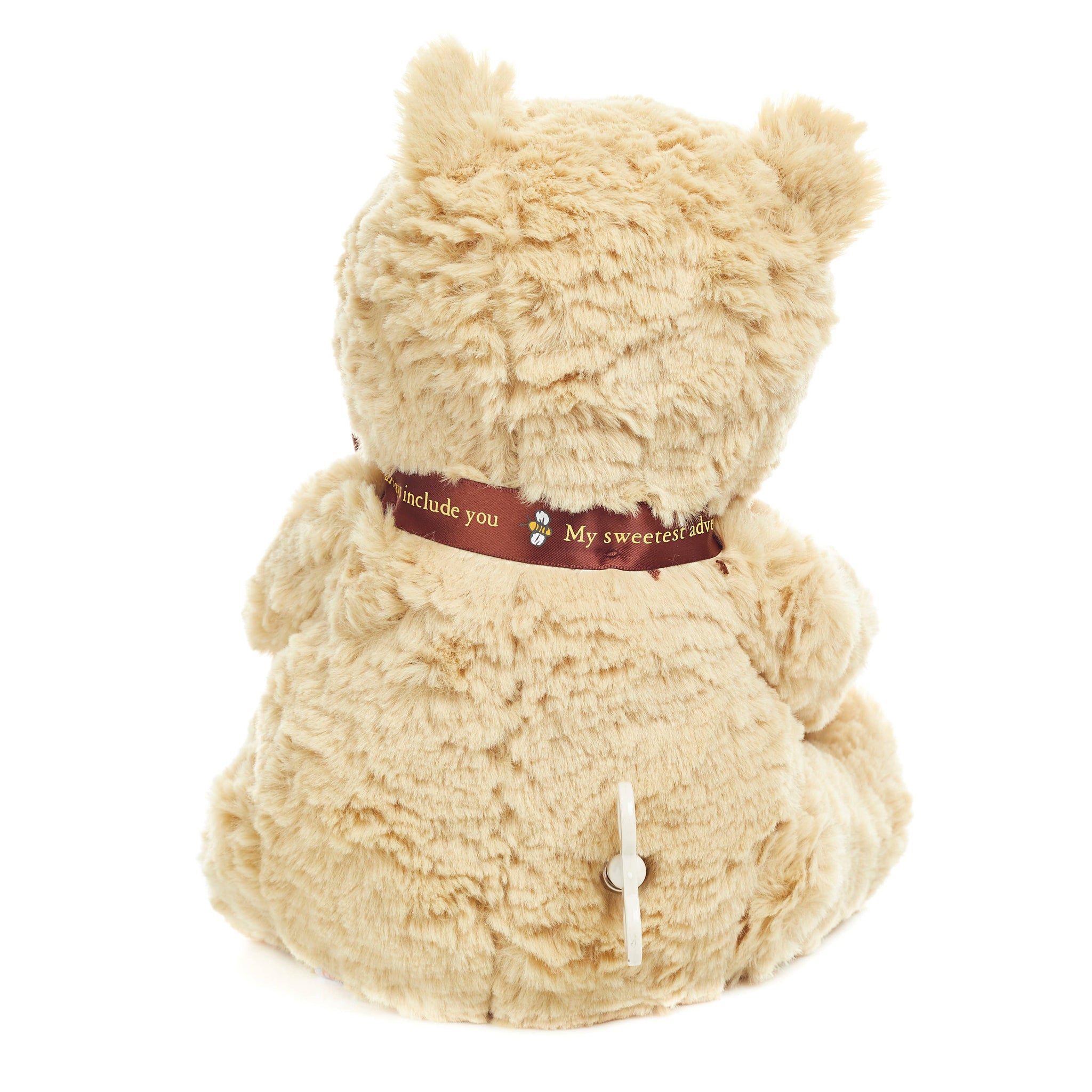 This Disney Baby Classic Pooh 13-Inch Waggie Musical has corduroy accents on his feet and ears and is dressed up with a lovely brown grosgrain ribbon. Holding his famous honeypot, Winnie the Pooh makes the perfect centerpiece of baby's nursery! Kids love watching as Winnie the Pooh's head gently sways from side to side along with the soothing "Winnie the Pooh" song.