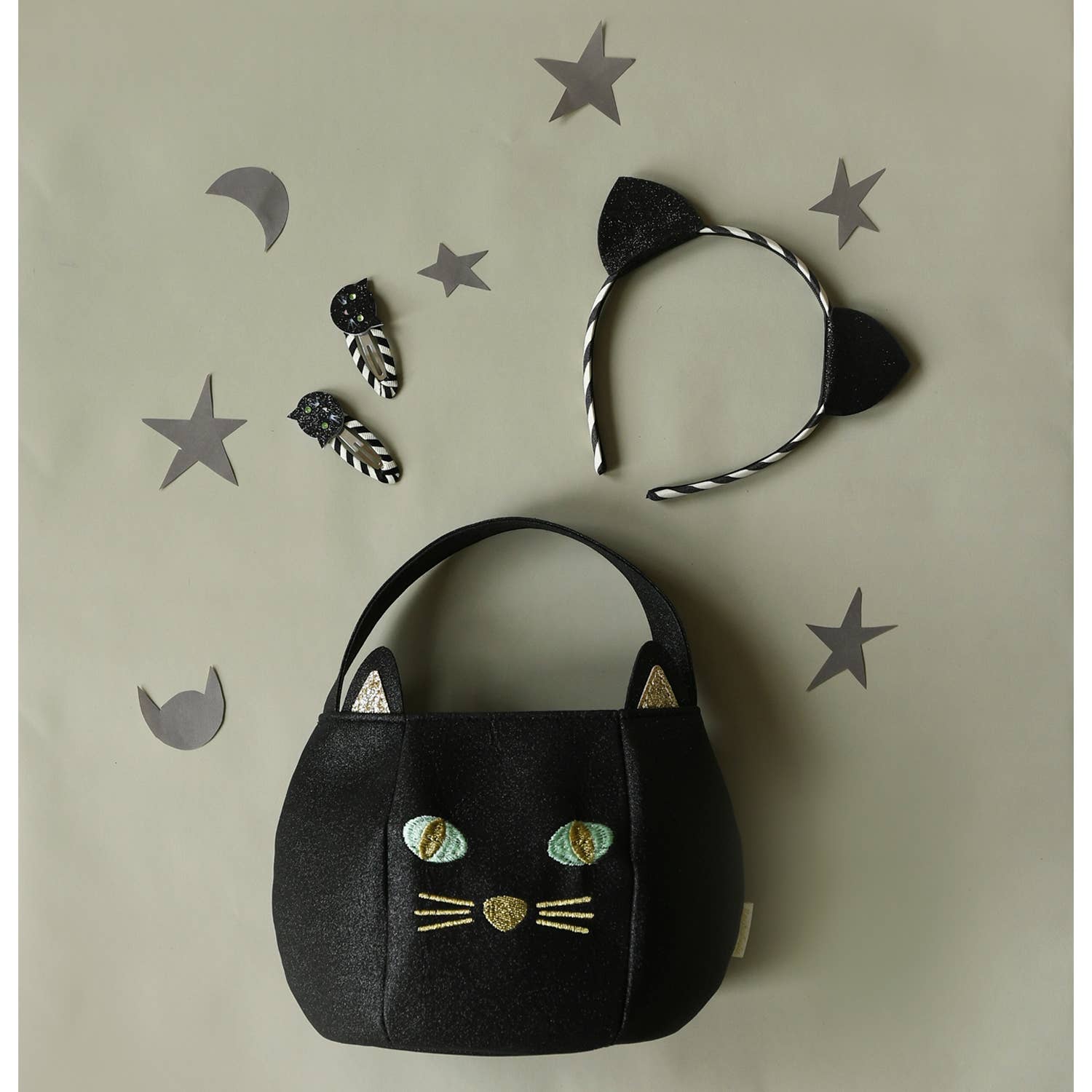 This halloween cat ears headband is the purrr-fect way to keep those superstitions away! Featuring two little glittery ears and a black and white stripy headband, it’s designed to provide a comfortable fit for little heads.