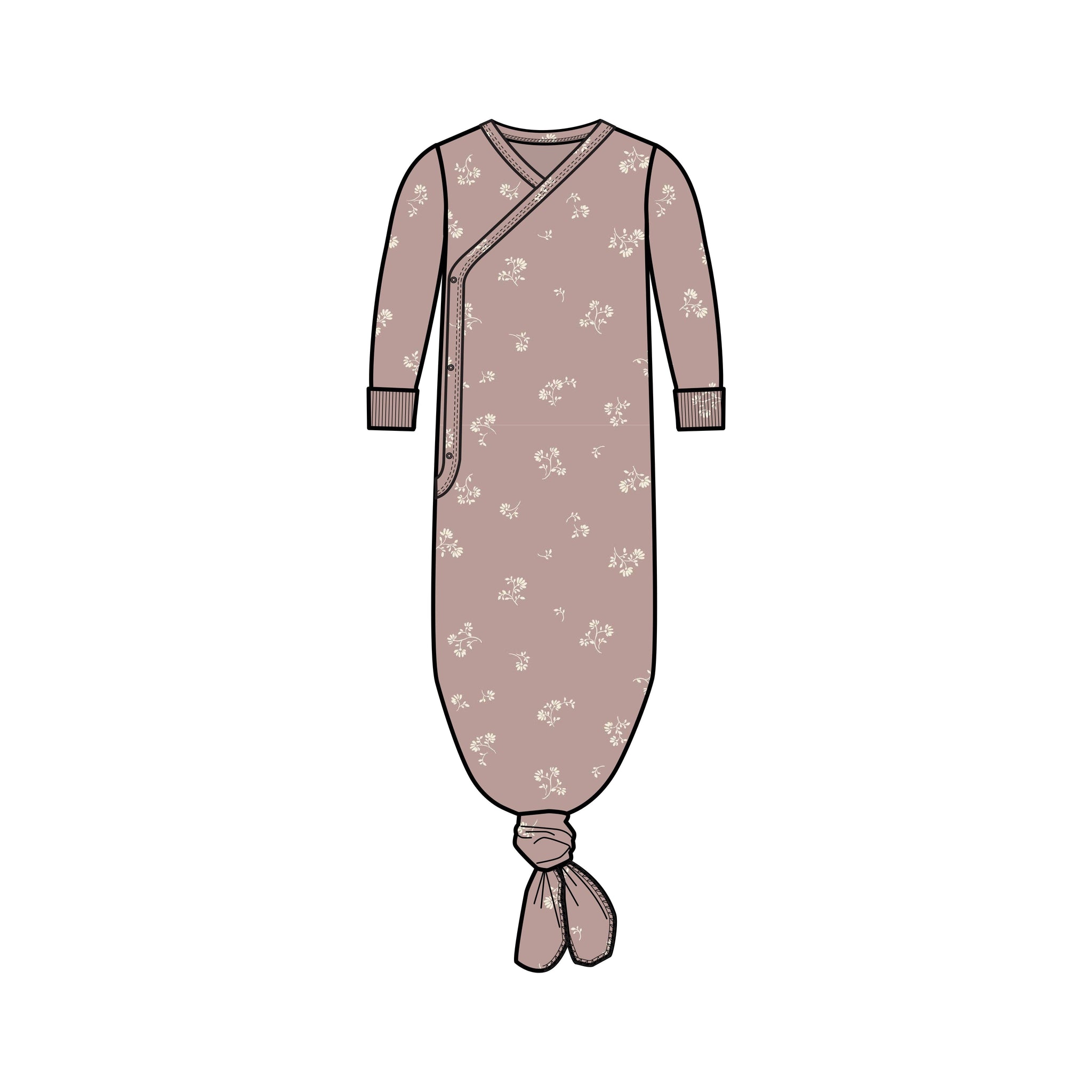 Designed with your newborn in mind, our kimono gown is a staple for those first few weeks at home. Featuring foldover cuffs and an adjustable bottom, this gown snaps closed in the front to make getting your baby dressed a breeze. * Made of 100% organic cotton Interlock fabric * Nickel-free snaps * Rib with elastane sleeve cuffs * Water-based dyes ensuring long-lasting color vibrancy and durability *