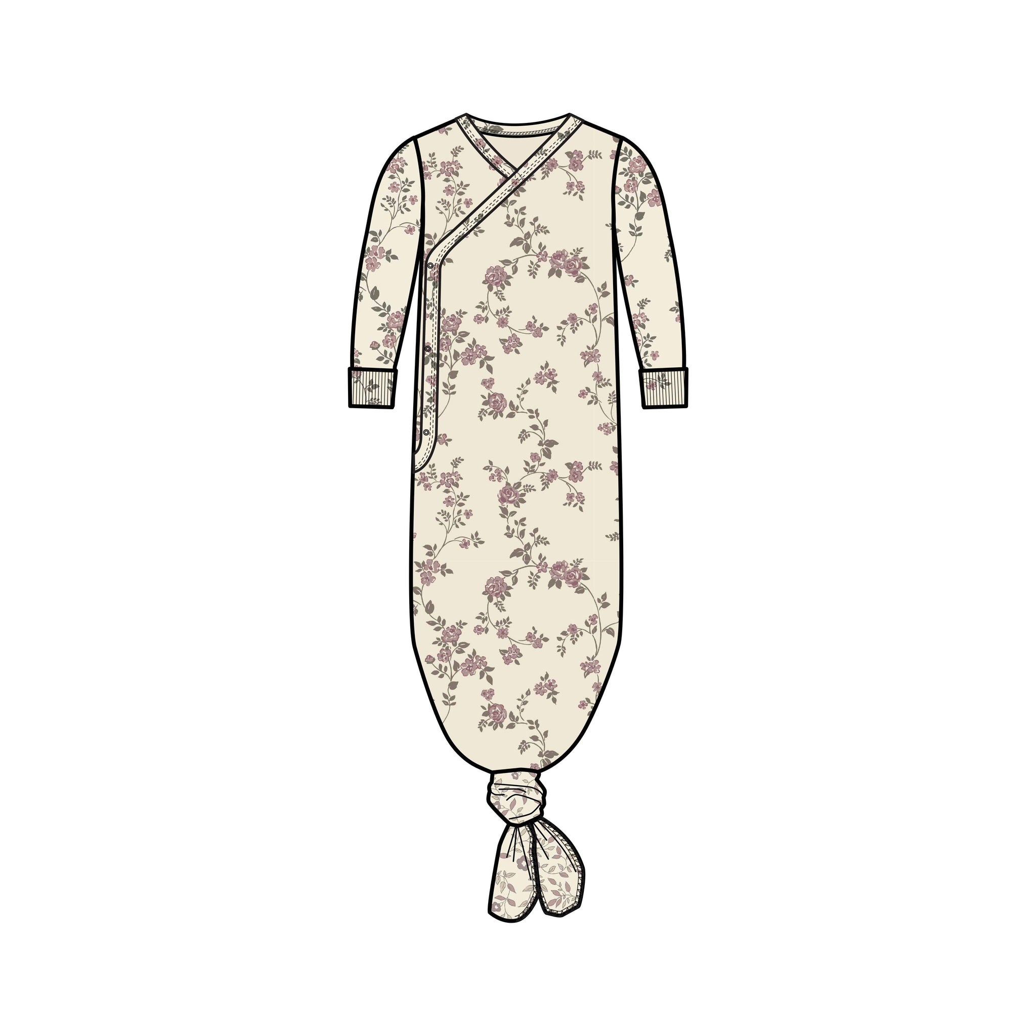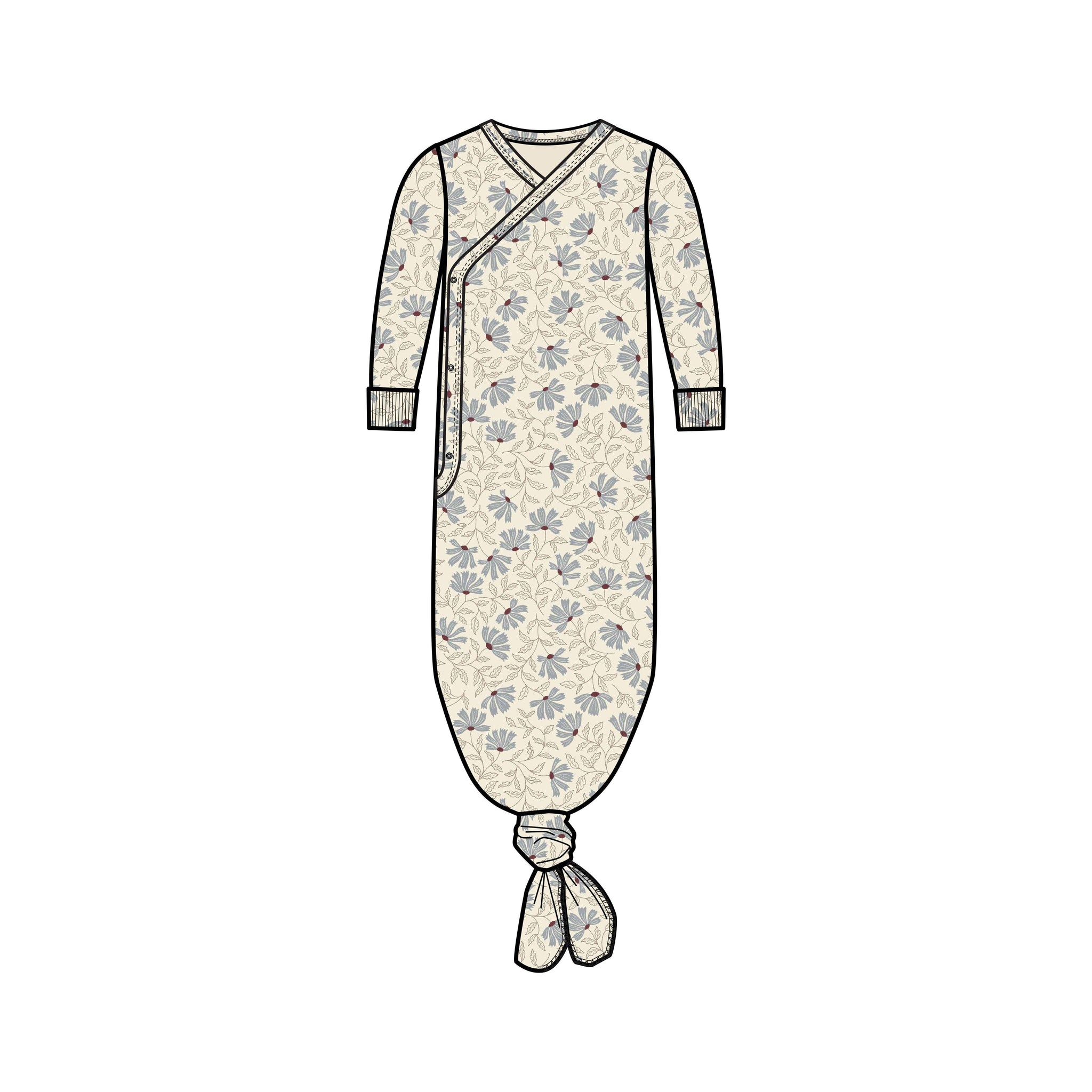 Designed with your newborn in mind, our kimono gown is a staple for those first few weeks at home. Featuring foldover cuffs and an adjustable bottom, this gown snaps closed in the front to make getting your baby dressed a breeze.