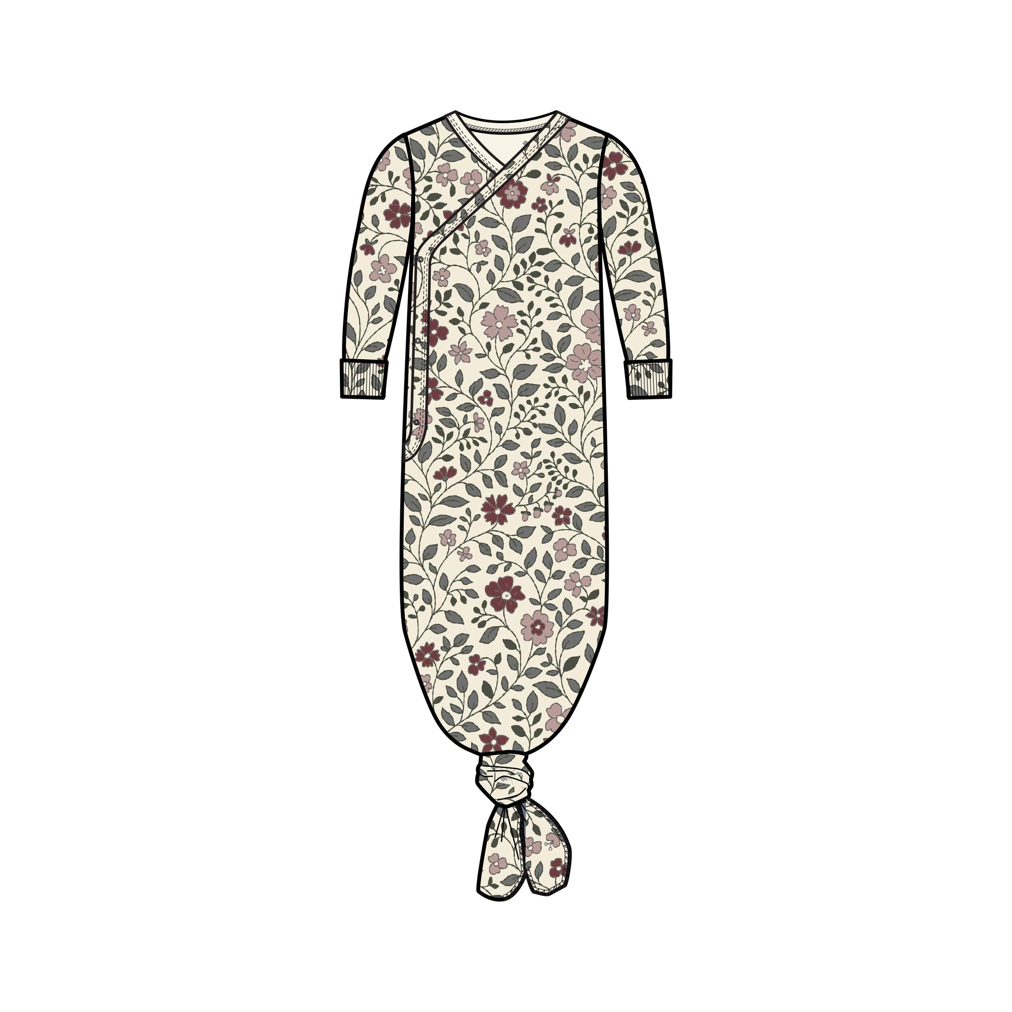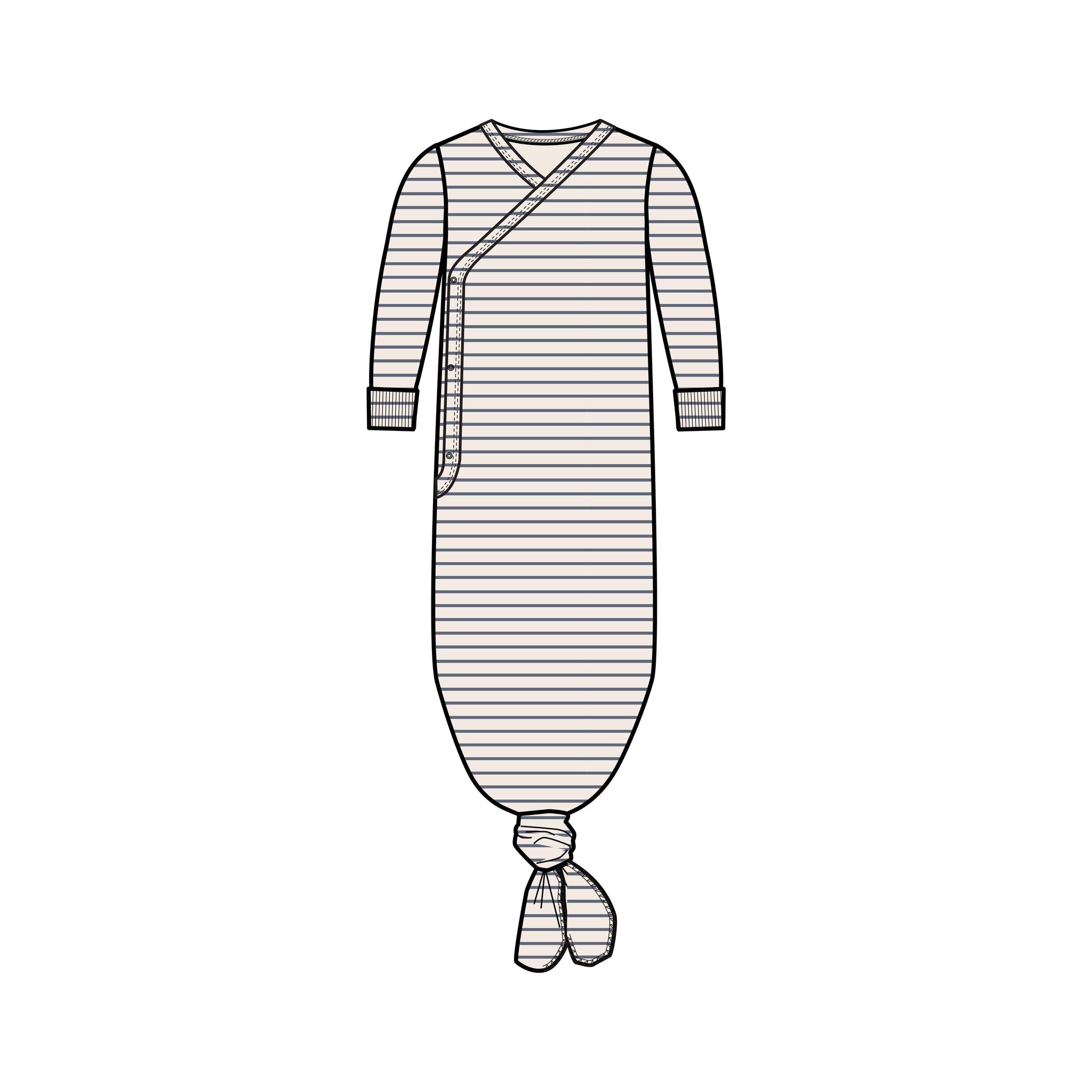Designed with your newborn in mind, our kimono gown is a staple for those first few weeks at home. Featuring foldover cuffs and an adjustable bottom, this gown snaps closed in the front to make getting your baby dressed a breeze. * Made of 100% organic cotton Interlock fabric * Nickel-free snaps * Rib with elastane sleeve cuffs * Water-based dyes ensuring long-lasting color vibrancy and durability *