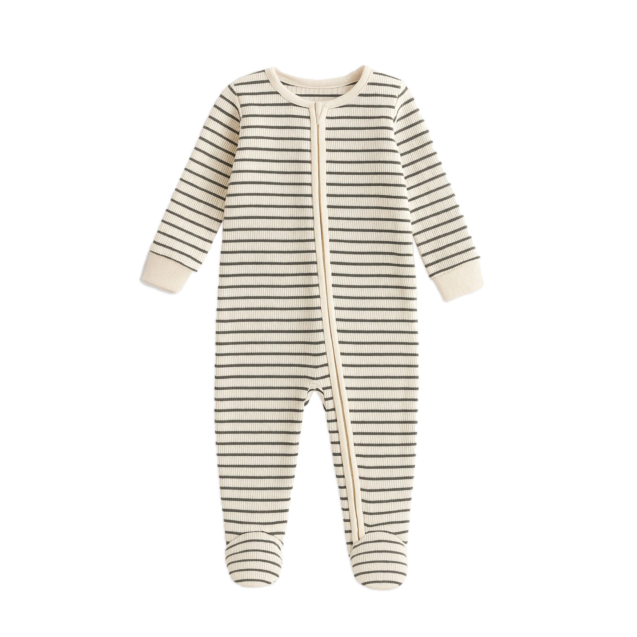 Product images shown are digital renderings. Final colors, textures, or details may vary slightly. Our Kit Ribbed Sleeper features a two-way zipper for easy changing. This organic favorite is now easier than ever to cozy up with. This sleeper is not flame-resistant and should fit snug. * Made of 95% Organic Cotton / 5% Elastane * Two-way zipper * Ribbed cuffs * Fold over cuff mitts for sizes NB and 0-3m * Footed grips from 6-12M and up * Machine Wash Cold, Tumble Dry Low
