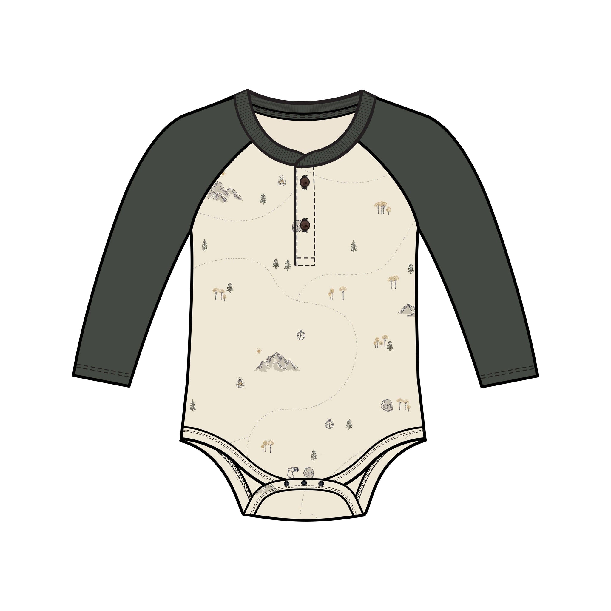 Our Sosa Raglan Henley Bodysuit but with long sleeves to keep your little one warm all season long! Long raglan sleeves and coconut buttons add the perfect touches to our Lucas Henley Bodysuit. It's an all-in-one outfit for fall days or a great layering piece to pair with our Cruz Joggers!