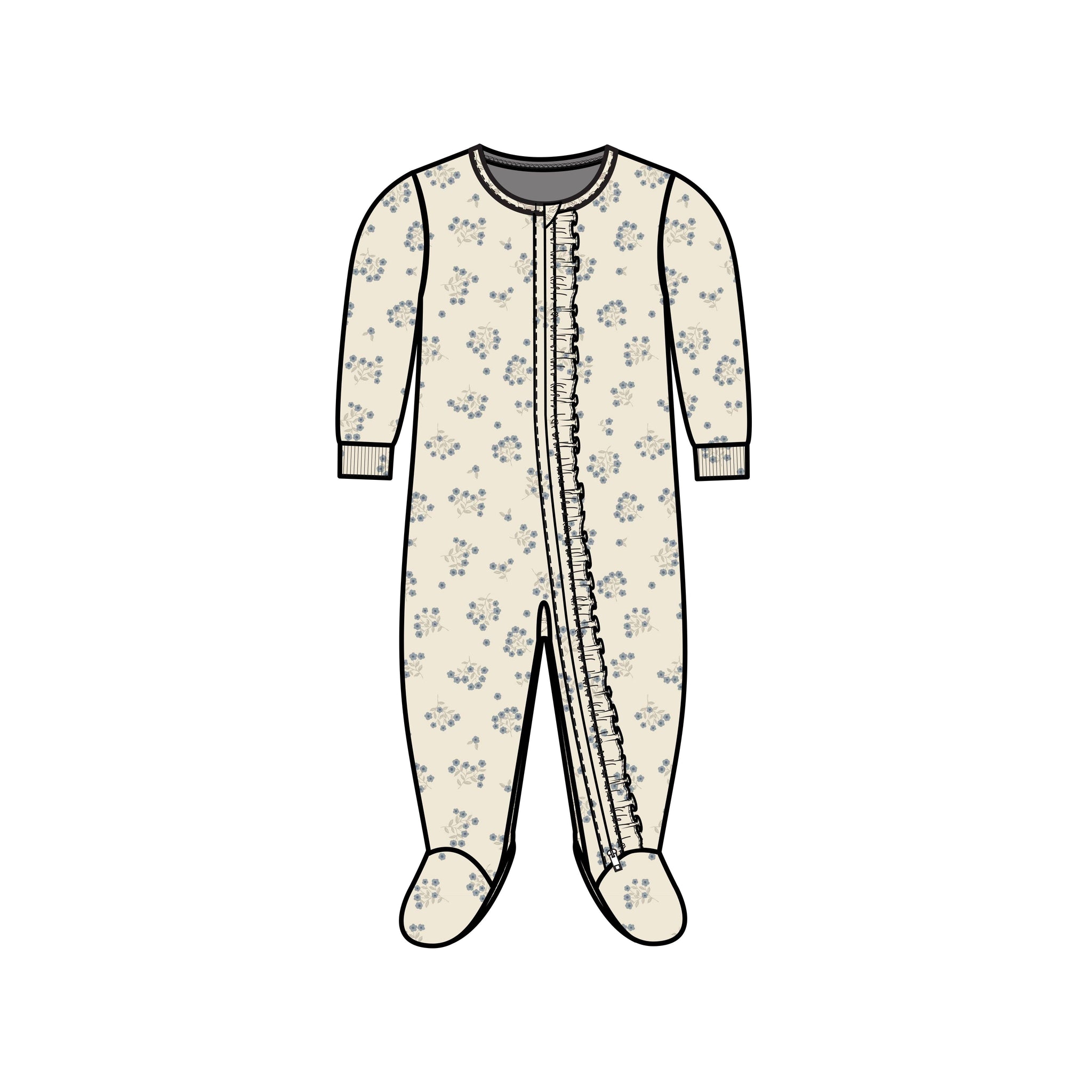 If you love our Peyton Ziipper Sleeper, you'll love this! Sweet dreams just got sweeter with the Neve Ruffle Zipper Sleeper. Made from soft, cozy interlock knit, it features a gentle ruffle that runs along the zipper opening for an extra dose of charm. A two-way zipper and built-in footies make it a go-to for day or night. * Made of 100% Organic Cotton Fabric * Self-ruffle trim along zipper opening * Two-way zipper for quick and easy changes * Built-in footies (with grips on select sizes if applicable) * Water-based dyes ensuring long-lasting color vibrancy and durability * Sustainably sourced and ethically produced * Naturally hypoallergenic * Machine Wash Cold, Tumble Dry Low
