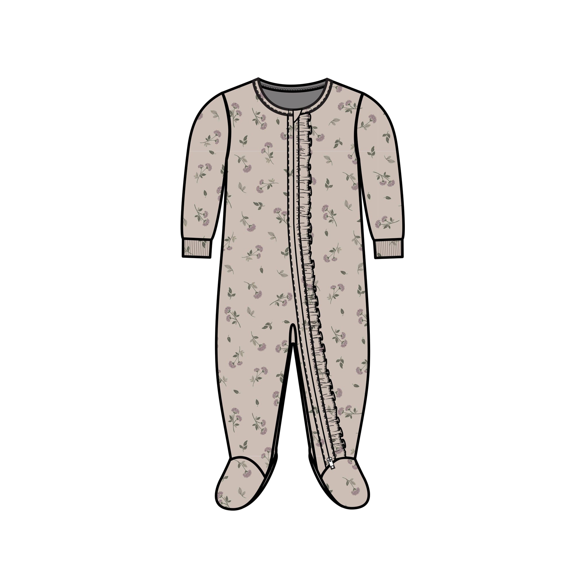 Neve Ruffle Zipper Sleeper: Ophelia Floral / Mauve / 3-6M