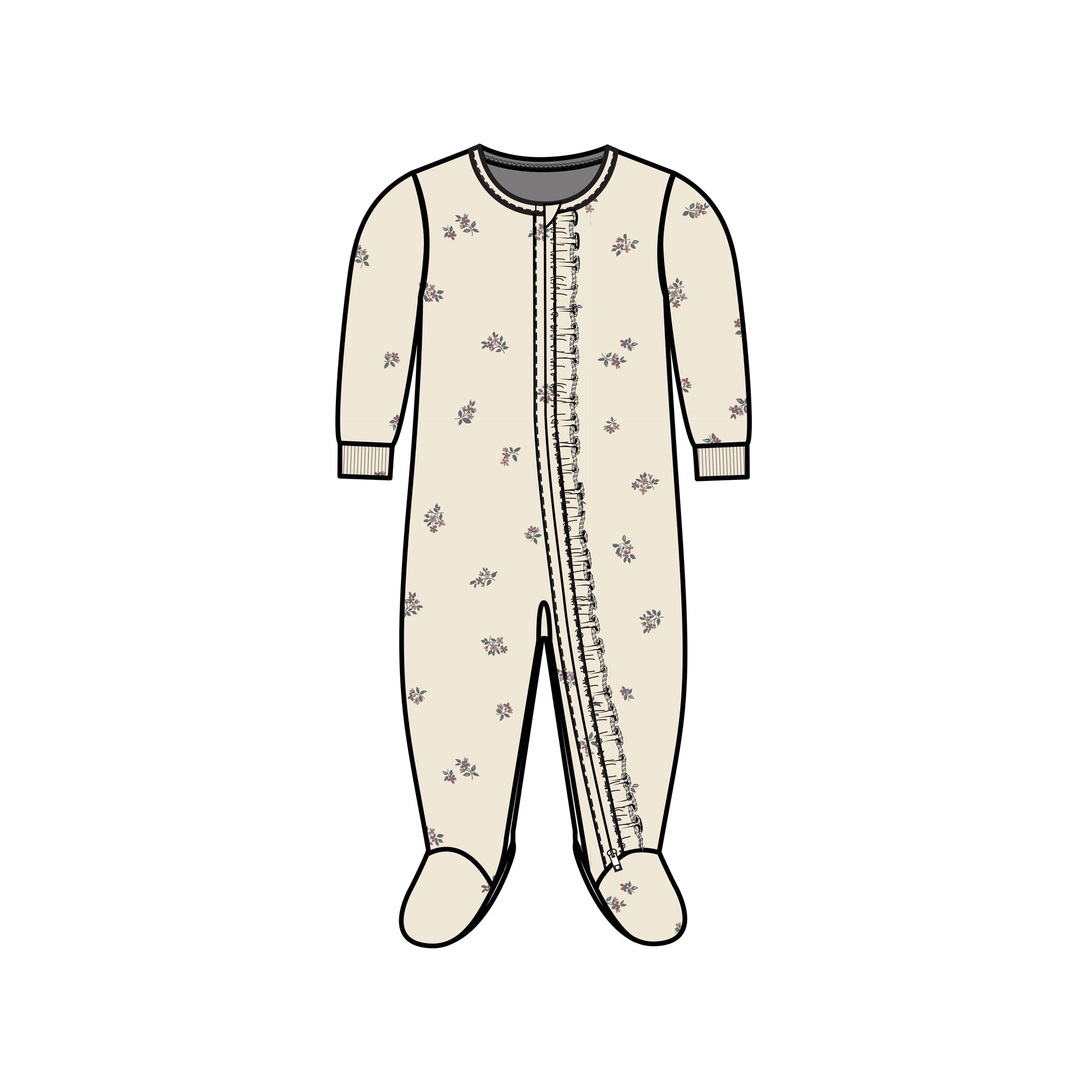 Neve Ruffle Zipper Sleeper: Ophelia Floral / Mauve / 6-12M